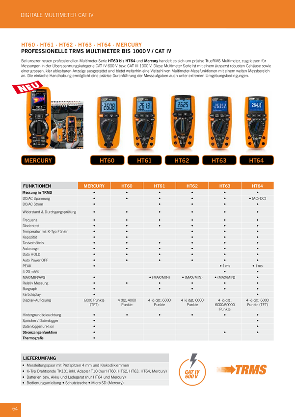 Multimetr cyfrowy HT Instruments HT61 1010310, CAT III 1000 V, CAT IV 600 V, AC/DC, kalibracja DAkkS