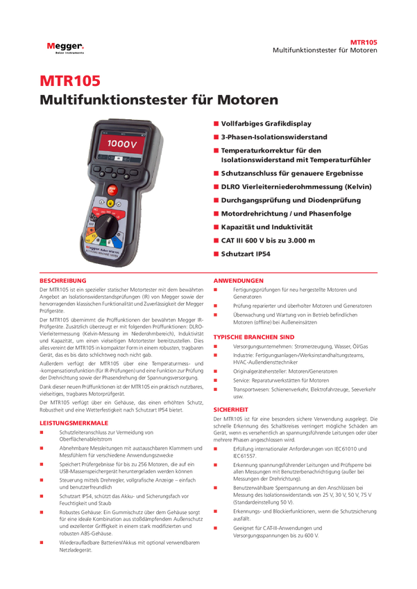 1010-361 Analizator napędu silnikowego Megger MTR105 Kalibracja (DAkkS)