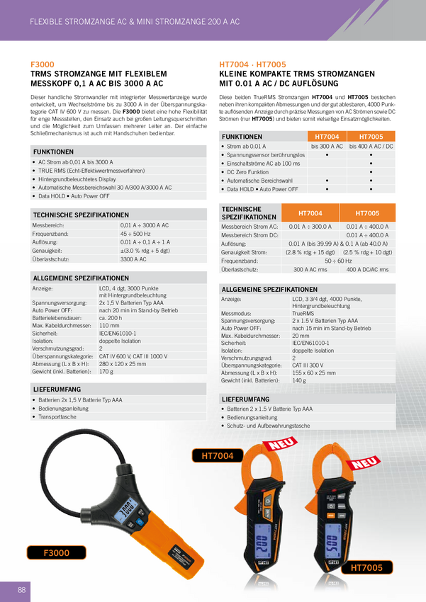 Miernik cęgowy cyfrowy HT Instruments HT7005 1010192, CAT III 300 V, kalibracja DAkkS