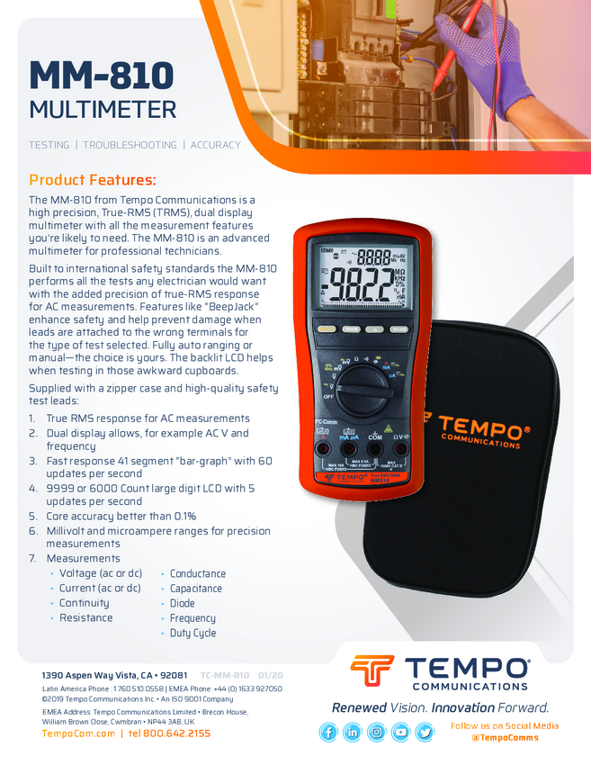 Multimetr cyfrowy Tempo Communications MM810 55500085, CAT IV 1000 V, AC/DC, kalibracja DAkkS