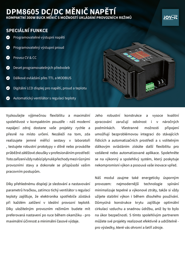 Joy-it DPM8605 Przetwornica DC/DC 75 V/DC - 60 V/DC/5 A 300 W
