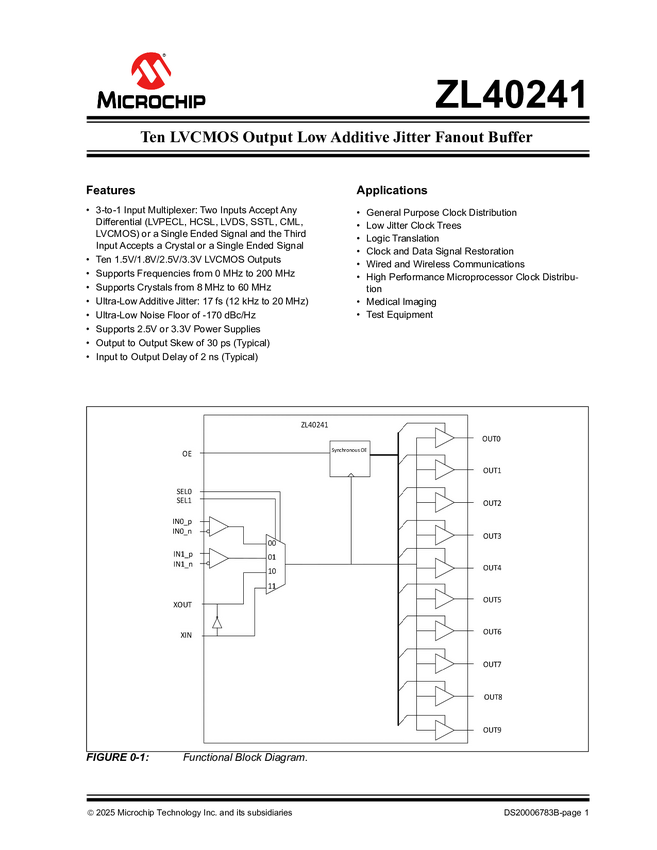 ZL40241 Ten LVCMOS Output Low Additive Jitter Fanout Buffer