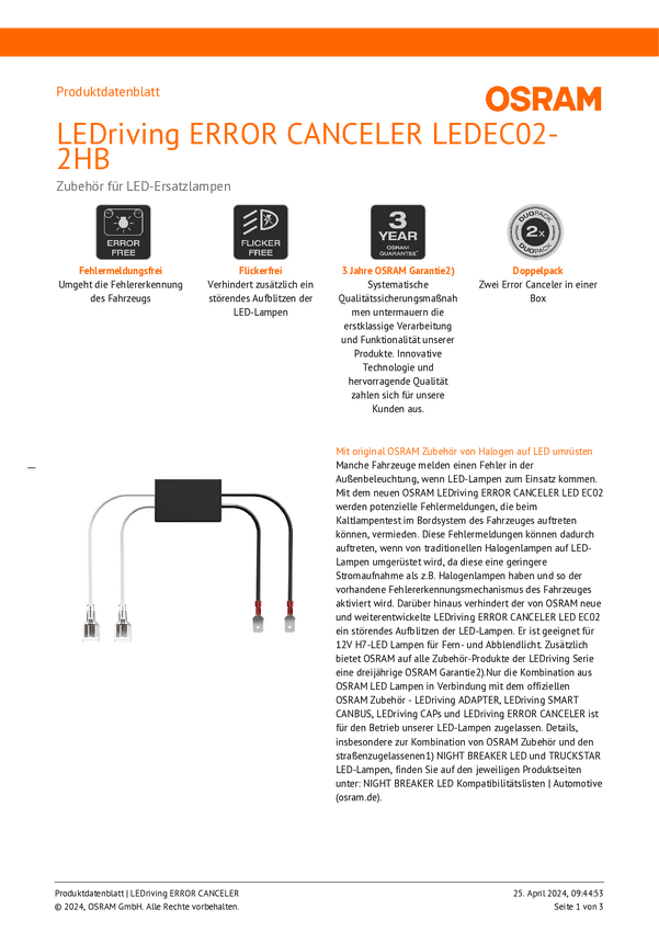 LEDEC02-2HB Osram Automotive Rezystor obciążeniowy CanBus LEDEC02-2HB Wersja (żarówek s...