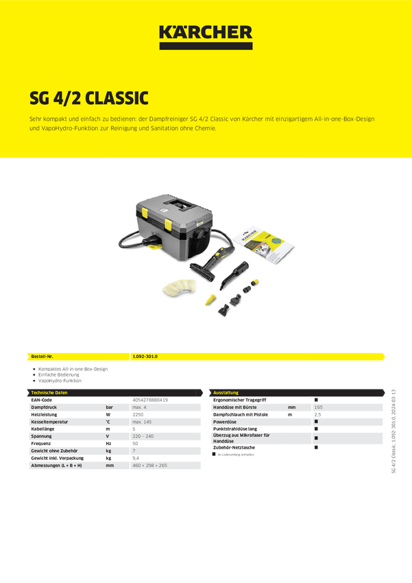 1.092-301.0 Myjka parowa Kärcher SG 4/2 Classic *EU żółty, czarny