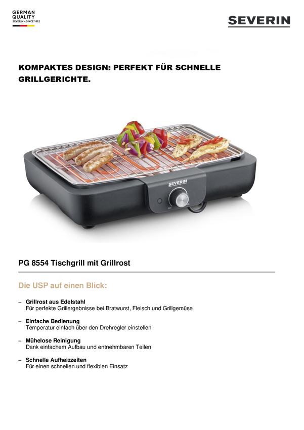 8554 Severin PG 8554 Stół Grill stołowy przewodowy, bezstopniowy regulator tempe...