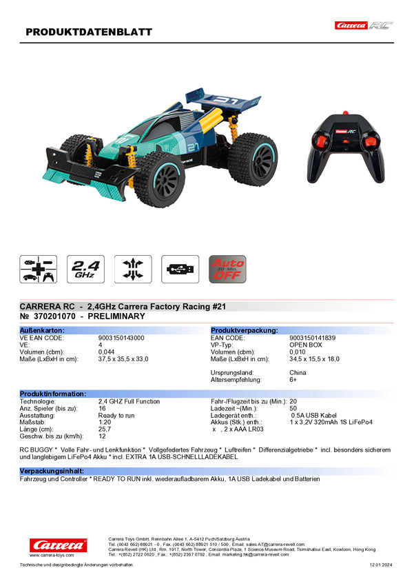 Carrera 370201070 Factory 1:20 Samochód RC dla początkujących Elektryczny Buggy