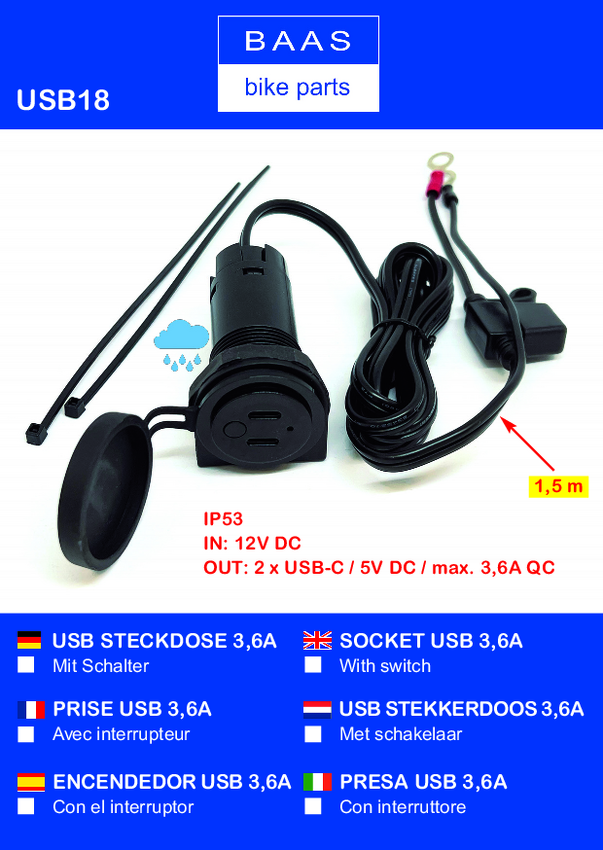 USB18 Podwójne gniazdo USB na płycie 3,6 A BAAS USB18 12/24 V
