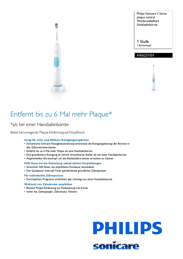 HX6231/01 Philips Bodycare HX6231/01 Serie 2 HX6231/01 Elektryczna szczoteczk...