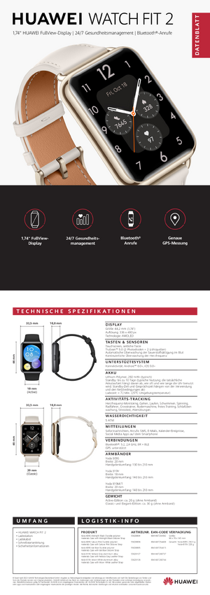 55029106 HUAWEI Watch Fit 2 Classic Monitor aktywności fizycznej 44 mm Uni światło k...