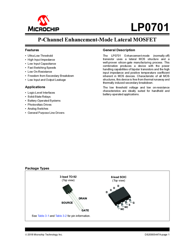 LP0701 P-Channel Enhancement-Mode Lateral MOSFET Data Sheet