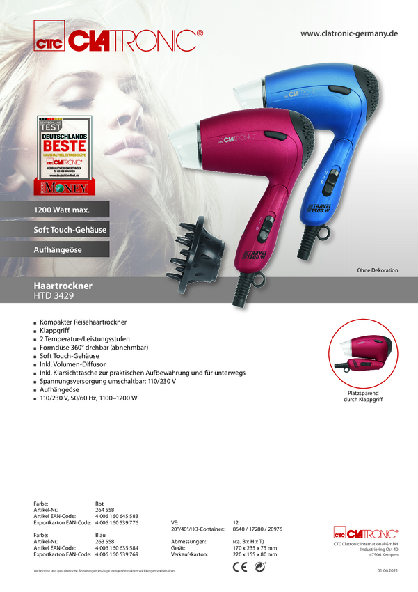 264558 Suszarka do włosów Clatronic 264558 1 szt.