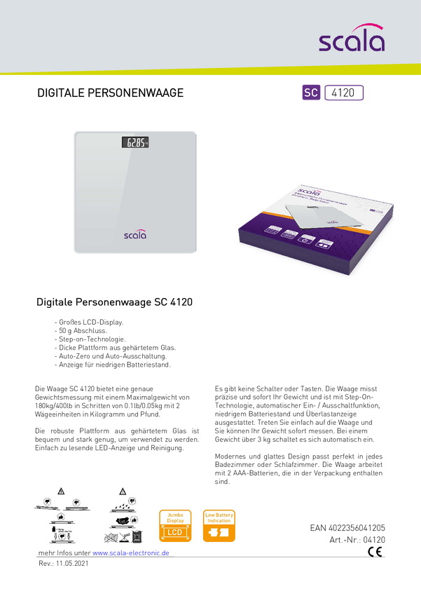4120 Scala SC 4120 Waga osobowa cyfrowy Zakres pomiaru maks.=180 kg