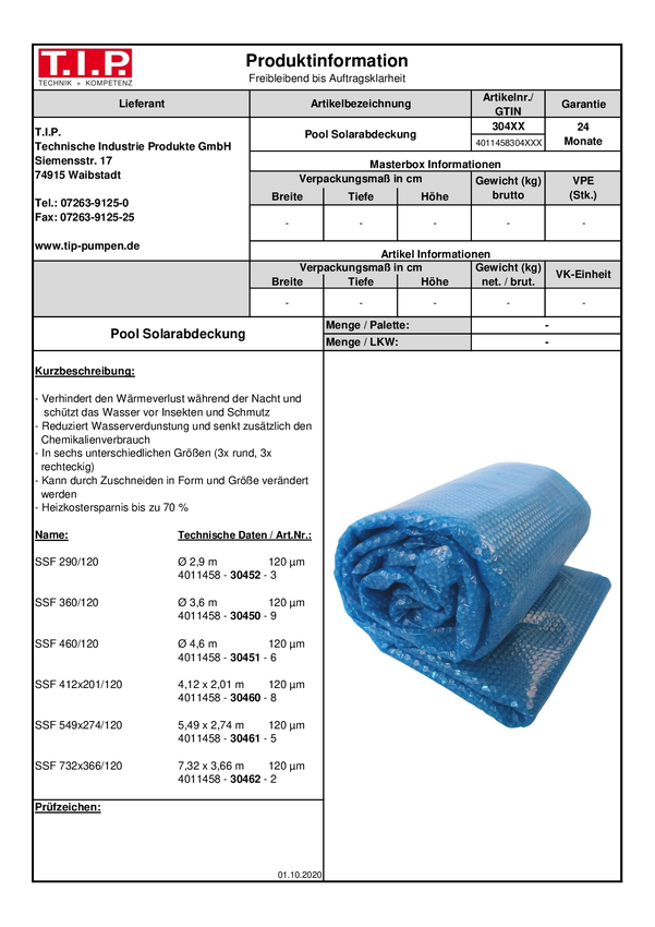 30460 Zadaszenie na basen T.I.P. - Technische Industrie Produkte 30460 1 szt.