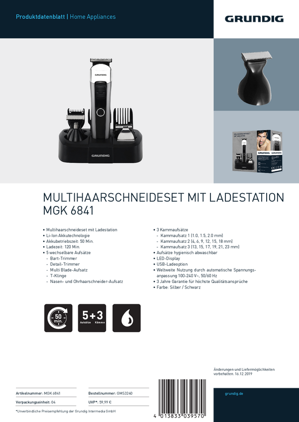 GMS3240 Grundig MGK 6841 Maszynka do strzyżenia brody, Maszynka do strzyżenia włosó...