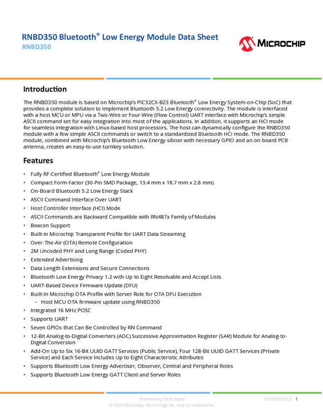 RNBD350UE RNBD350 Bluetooth® Low Energy Module Data Sheet