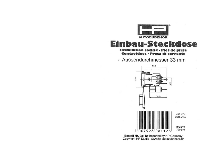 28112 Gniazdo do zabudowy z klapką HP Autozubehör Einbau-Steckdose mit Deckel Obc...