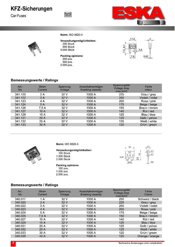 340.029 MTA Automotive 340.029 Bezpiecznik nożowy 15 A niebieski 500 szt.
