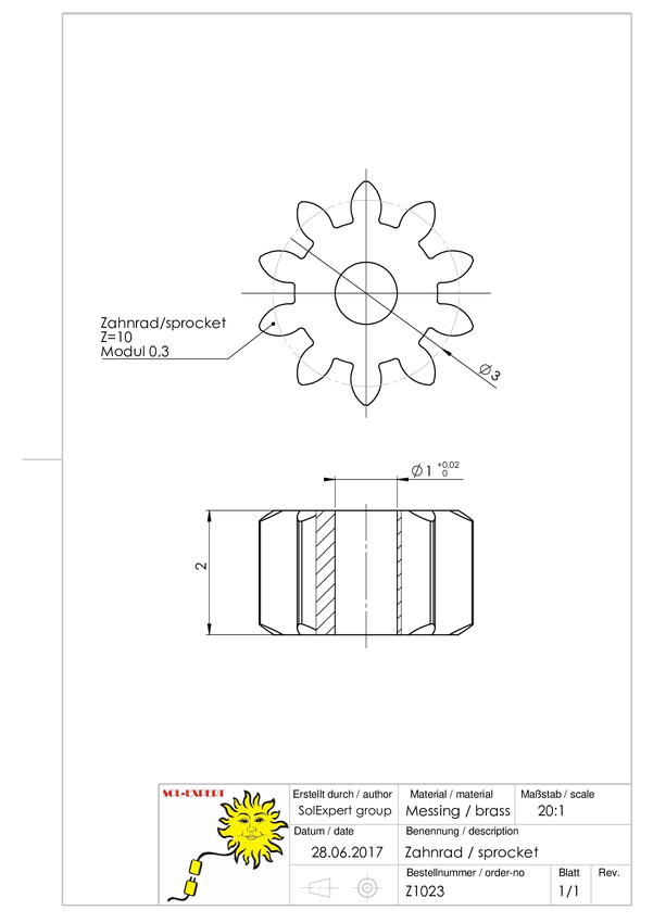 Z1023S Mikro koło zębate Sol Expert Z1023S Moduł 0.3 z uzębieniem skośnym 1 szt.