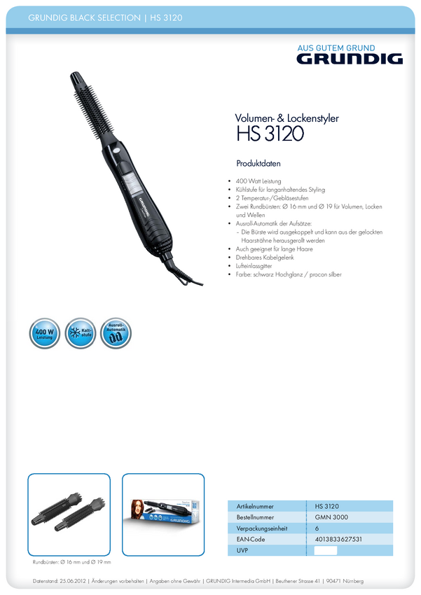 HS3120 Lokówko Suszarka do włosów Grundig HS3120, 400 W
