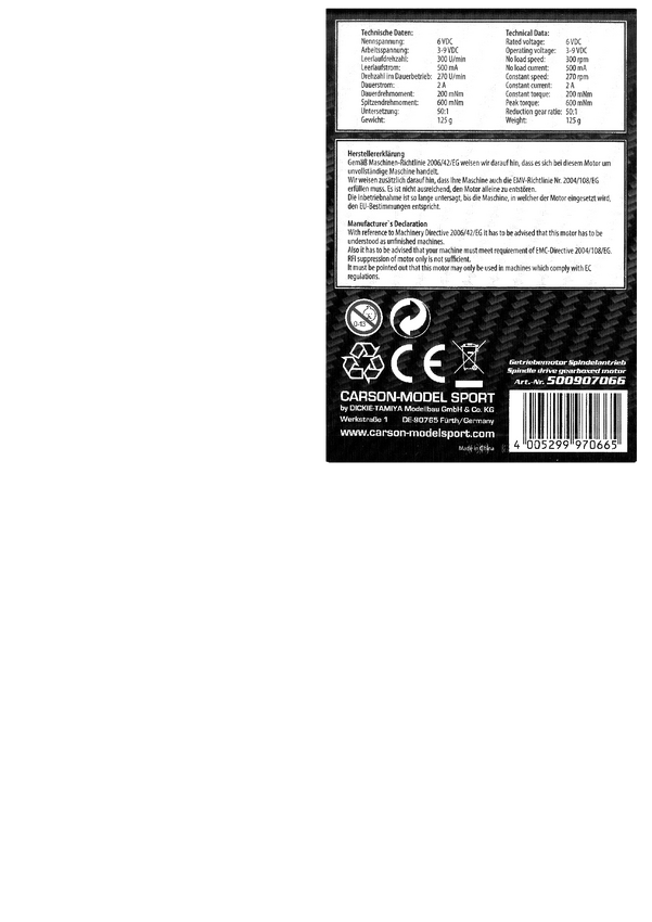 Carson Modellsport 907066 Silnik przekładniowy 1 szt.