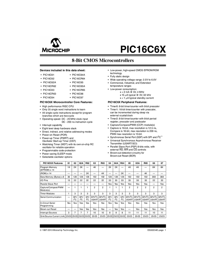 PIC16C62, PIC16C65A, PIC16CR62, PIC16CR64, PIC16C62A, PIC16C63, PIC16C66, PIC16C67, PIC16C64A, PIC16CR63, PIC16C65