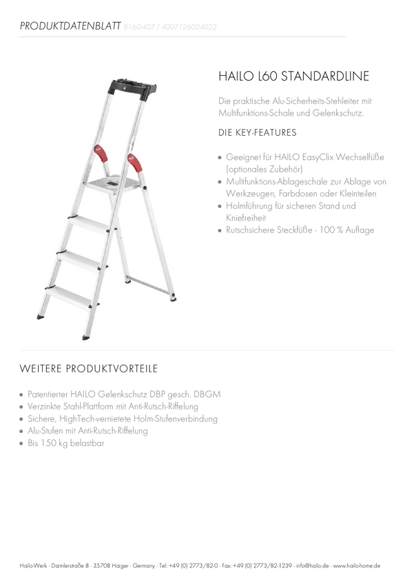8160-407 Drabina składana ze stopniem Hailo L60 StandardLine 8160-407, zaw. wkładkę...