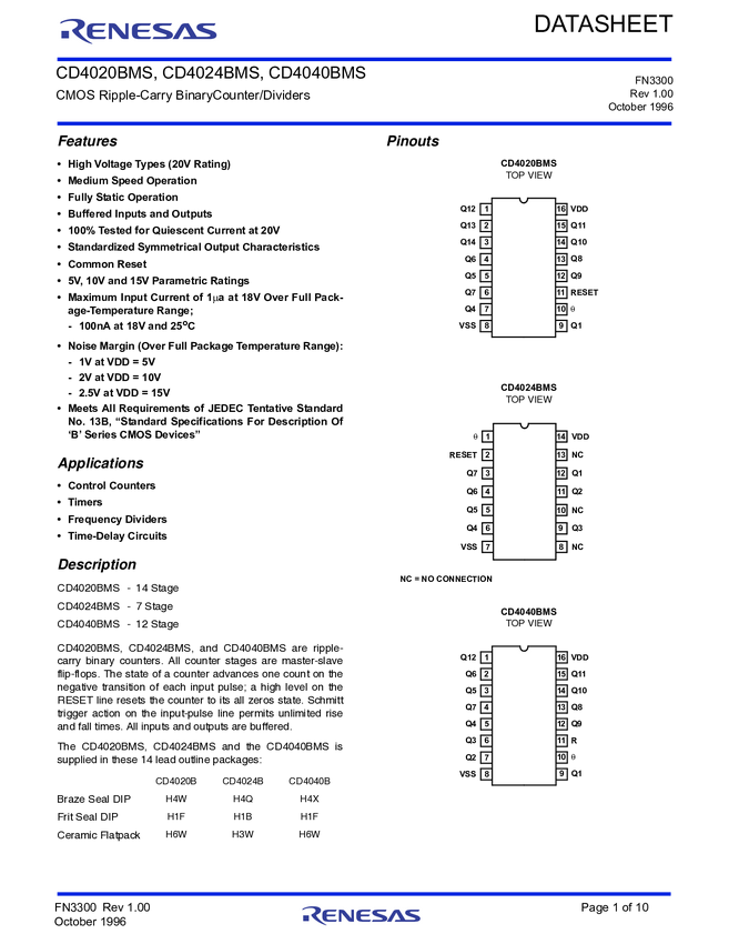 CD4024BMS CMOS Ripple-Carry Binary Counter/Divider