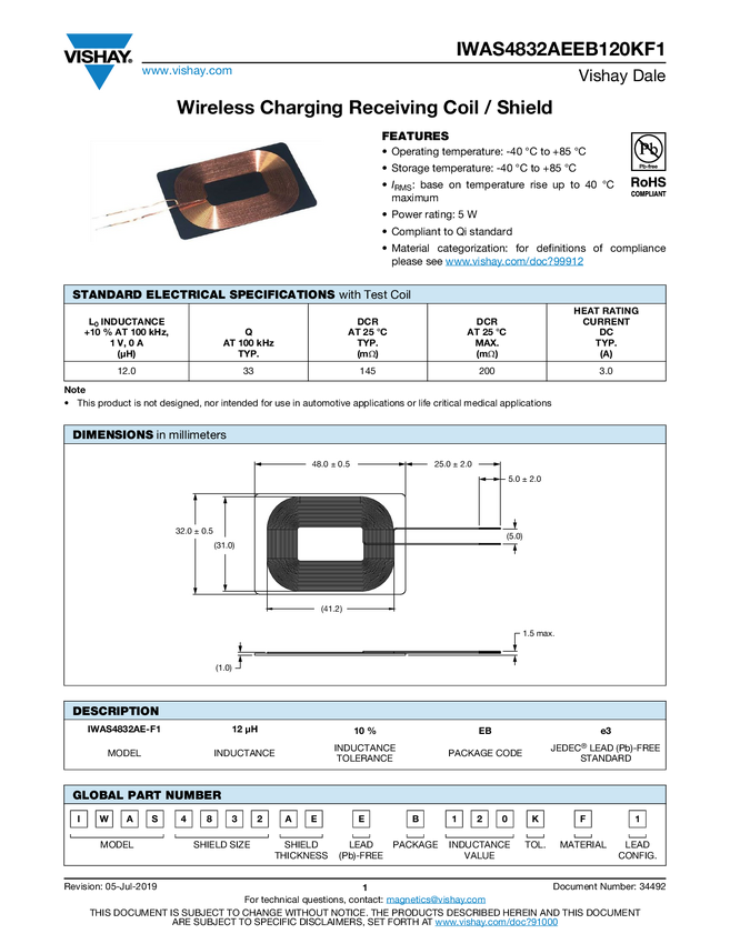 IWAS4832AEEB120KF1 Wireless Charging Receiving Coil / Shield