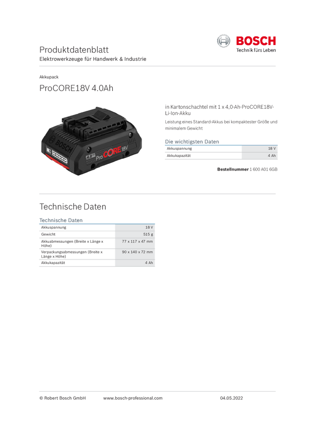 Bosch Professional ProCORE 18V/4 Ah 1600A016GB Akumulator do elektronarzędzi 18 V 4 Ah Li-Ion