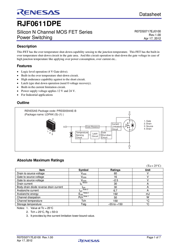 RJF0611DPE Silicon N Channel MOS FET Series Power Switching
