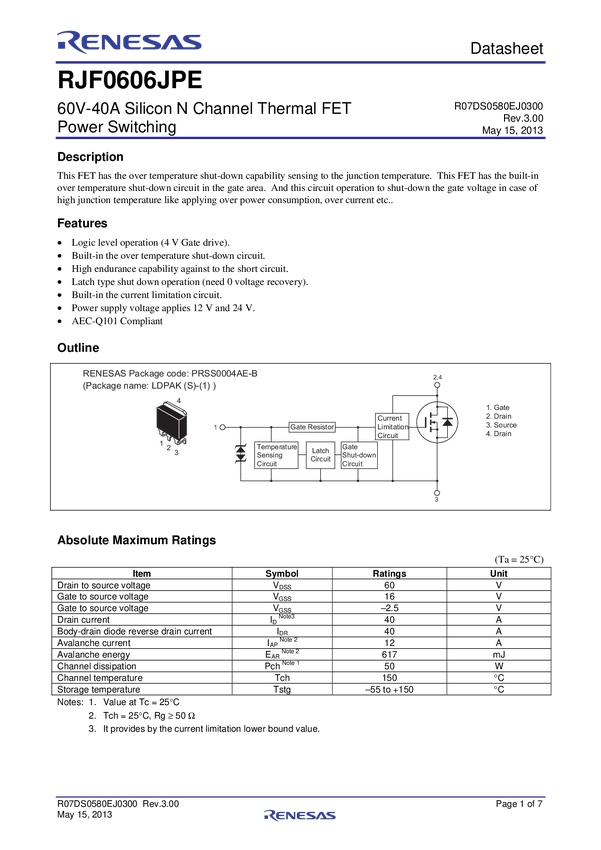 RJF0606JPE Nch Thermal FET 60V 40A 19mohm TO-263 / D2PAK