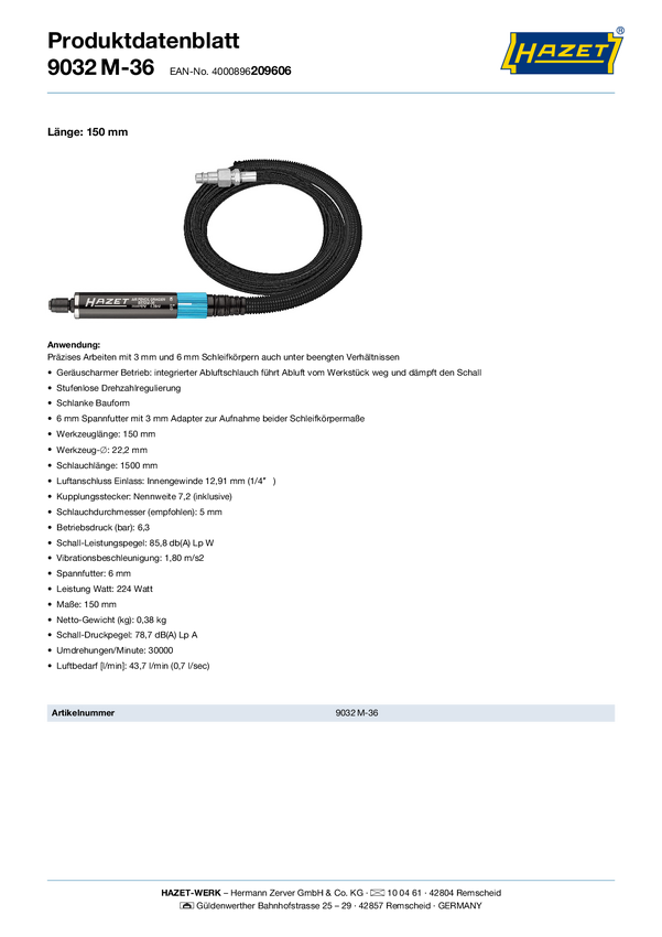 9032M-36 Szlifierka palcowa, pneumatyczna Hazet 9032M-36