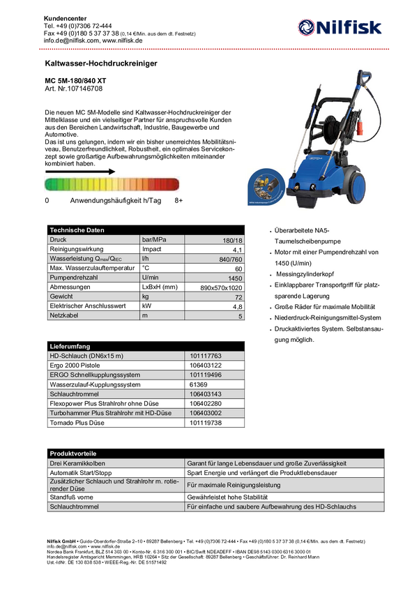 Nilfisk MC 5M-180/840 XT (POSEIDON 5-41 XT) Myjka ciśnieniowa 180 bar Zimna woda