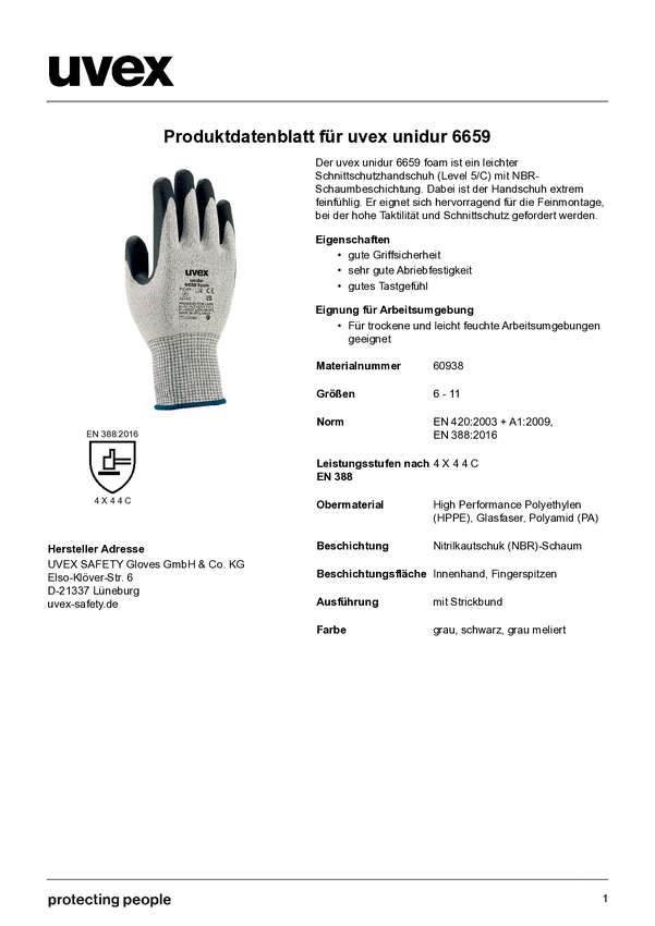 6093807 uvex unidur 6659 foam 6093807 Nitryl Rękawice robocze Rozmiar rękawic: 7 EN...