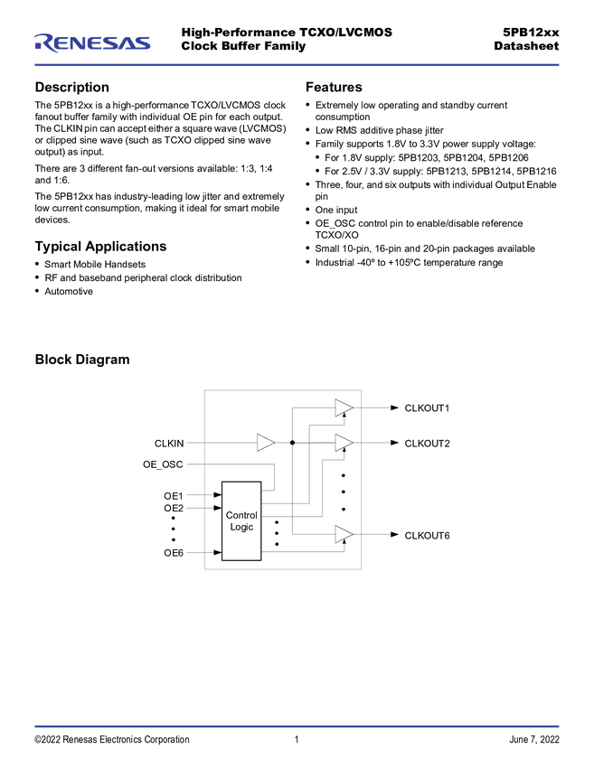 5PB1214 2.5V to 3.3V 1:4 TCXO/LVCMOS High-Performance Clock Buffer