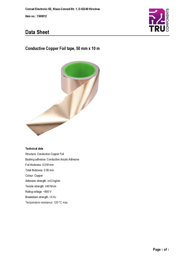TRU COMPONENTS 1569012 Taśma klejąca ESD CU-F5.0R1000, 10 m