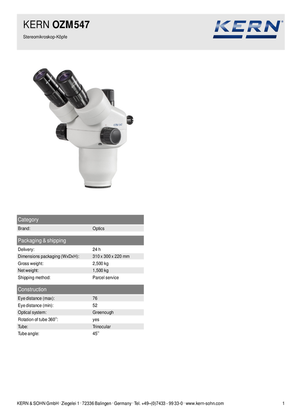 OZM 547 Kern OZM547 OZM 547 Głowica do mikroskopu Pasuje do marki (mikroskopu) Kern