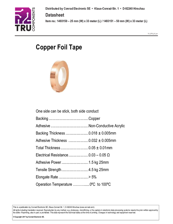 CFT-50/33M Taśma miedziana TRU COMPONENTS CFT50 CFT-50/33M (D x S) 33 m x 50 mm 33...