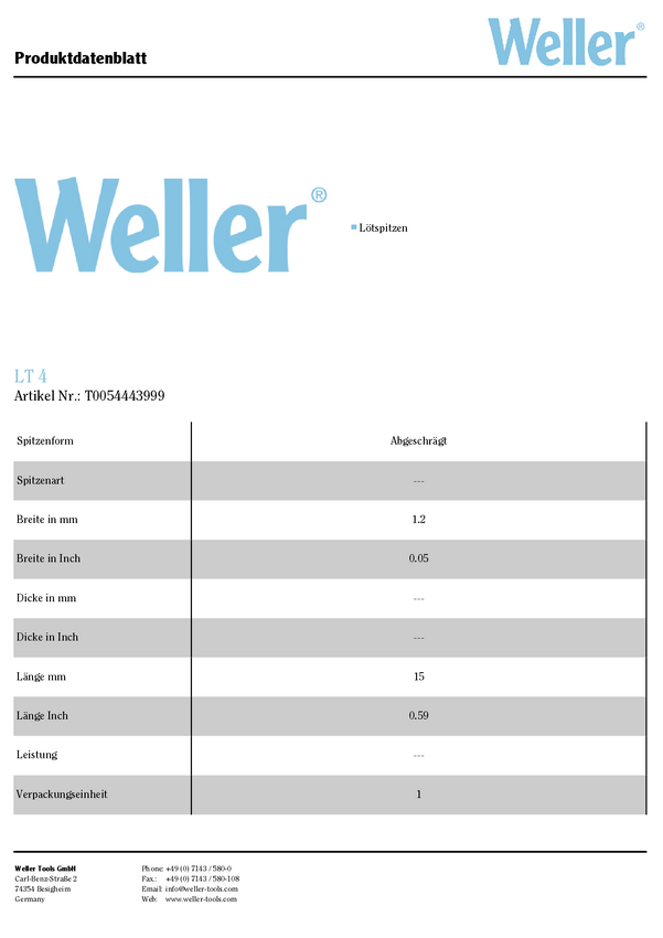 T0054443999 Grot lutowniczy Weller LT 4 T0054443999 1 szt.
