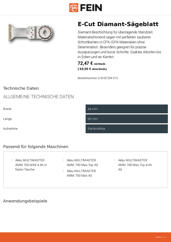 63502204210 Ostrze do multinarzędzia Fein E-Cut 63502204210 SuperCut 1 szt.
