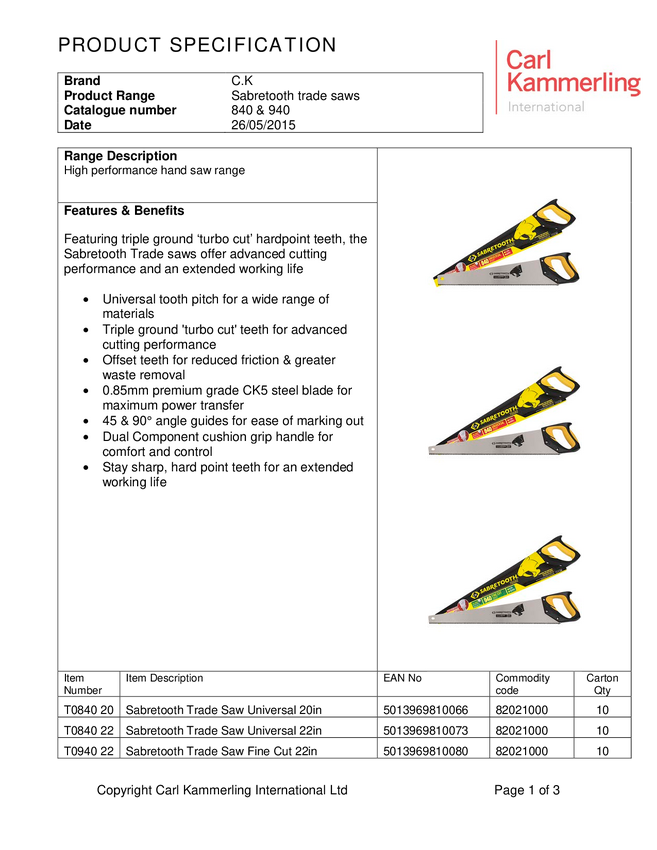 T0840 22 Piła płatnica C.K Sabretooth Trade T0840 22 1 szt.