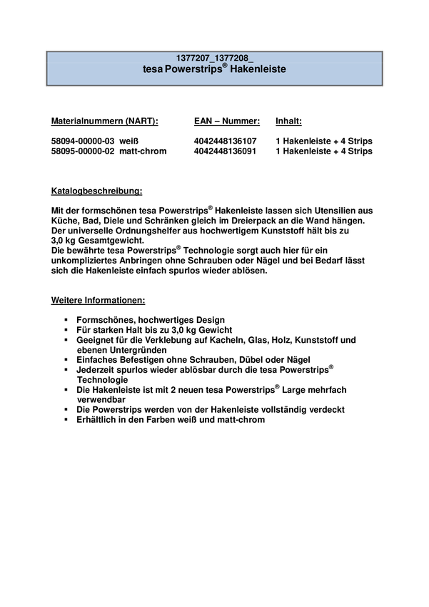 58094-00000-20 Listwa z hakami tesa POWERSTRIPS® 58094-00000-20 1 szt.