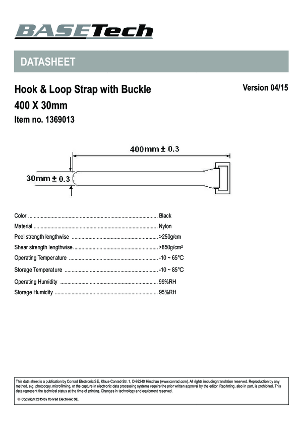 98001c376 Taśma rzepowa Basetech 98001c376 98001c376, 450 N, (D x S) 400 mm x 30 mm,...