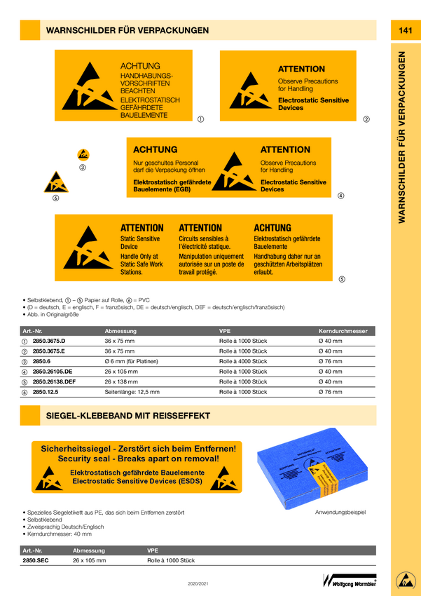 2850.3675.E Znak ostrzegawczy ESD Wolfgang Warmbier 2850.3675.E, 75 mm x 36 mm , 1000 s...
