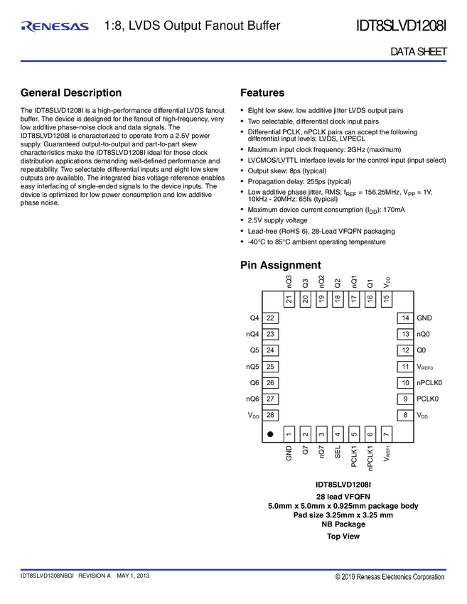 8SLVD1208I 1:8 LVDS Output Fanout Buffer