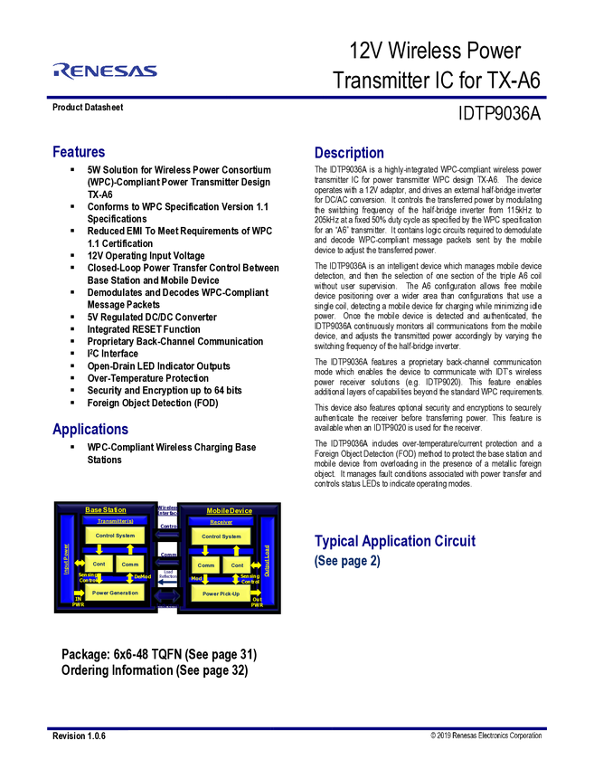 P9036A WPC 1.1 12V Wireless Power Transmitter for Tx-A6