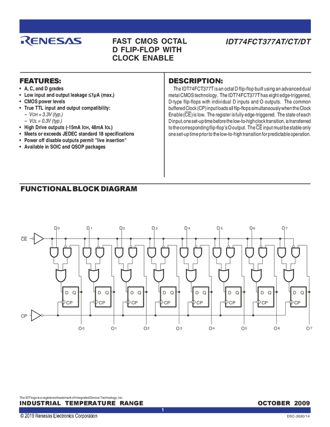 74FCT377T Octal D Flip-Flop with Clock Enable