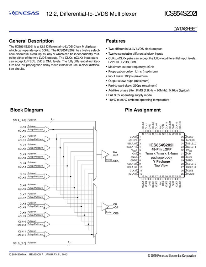 854S202I 12:2 Differential-to-LVDS Multiplexer