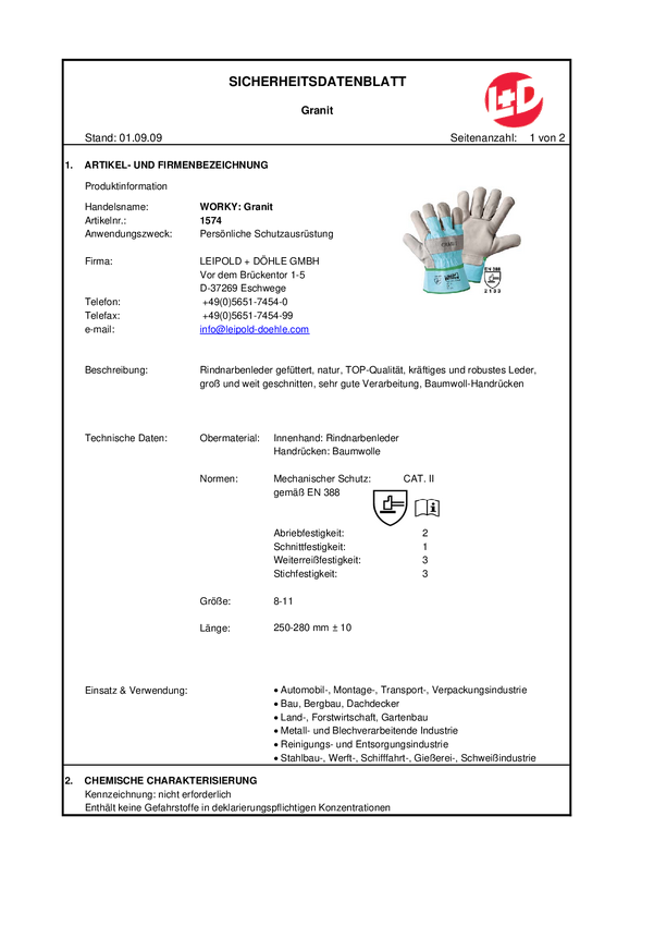 1574 Leipold Doehle Granit 1574 Bydlęca skóra licowa Rękawice robocze Rozmiar rę...