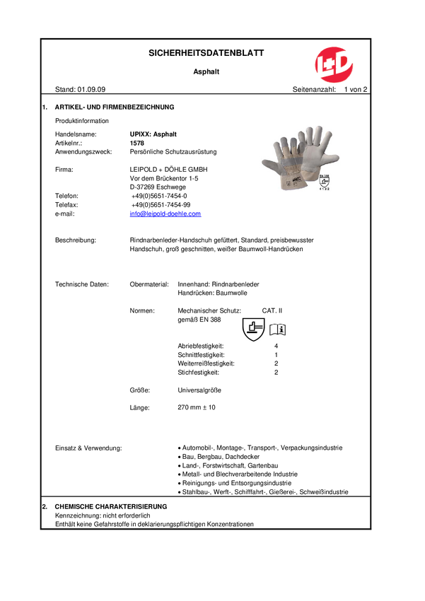 Leipold Doehle Asphalt 1578 Bydlęca skóra licowa Rękawice robocze Rozmiar rękawic: Rozmiar uniwersalny EN 388:2016 CAT I